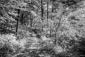 Country lane in the hardwood forests of Marion County Iowa.